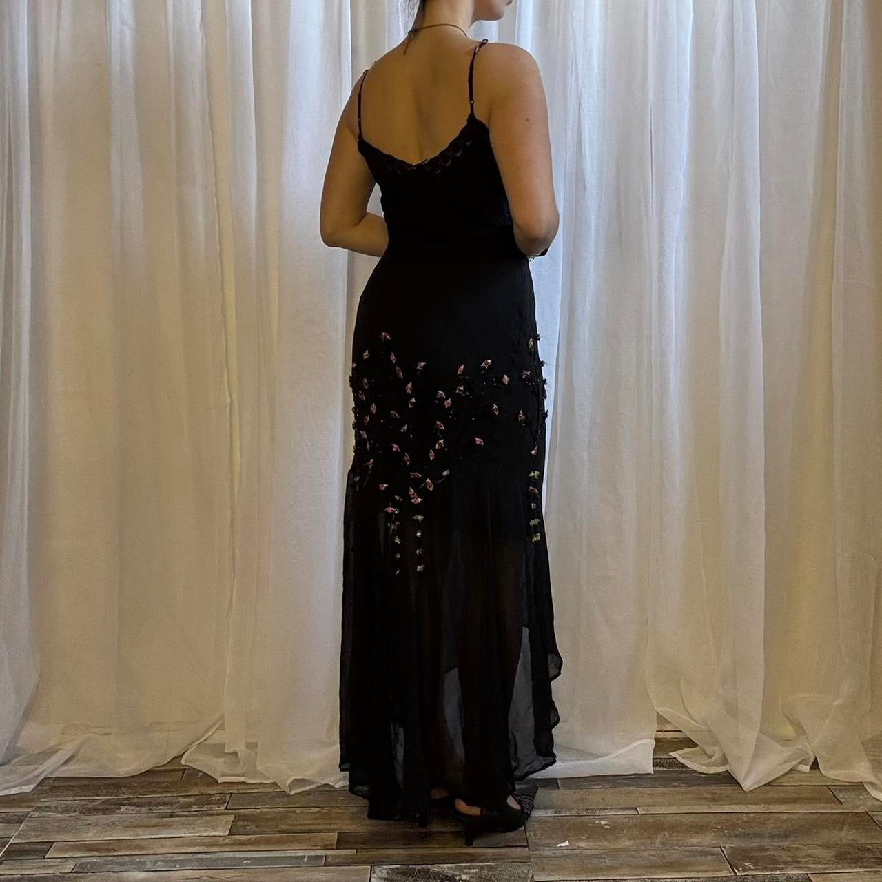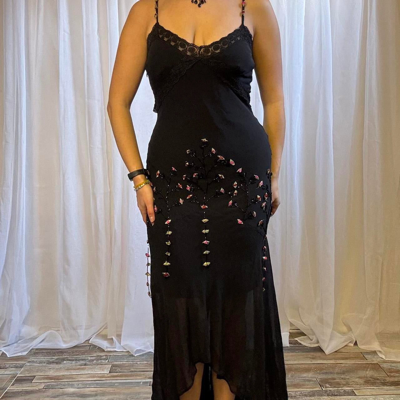 y2k Cache silk maxi dress fishtail hem with pink flower detailing