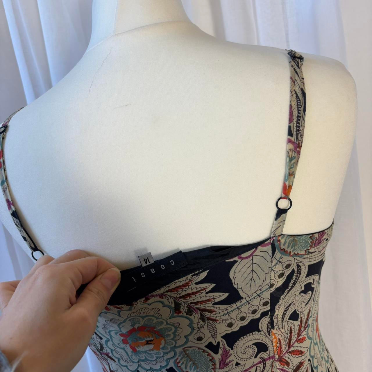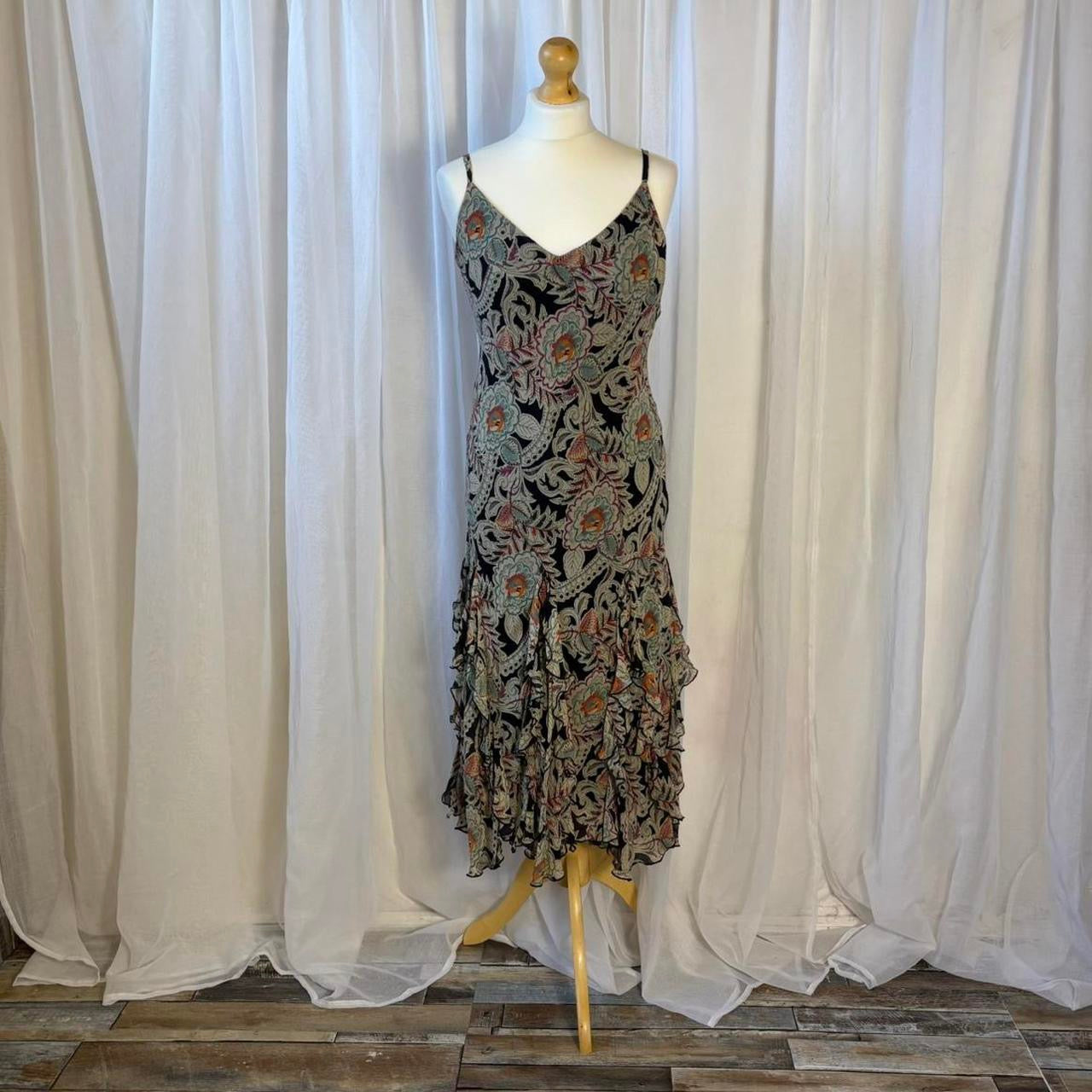 Y2K Coast silk midi dress floral ruffle hem uk 14