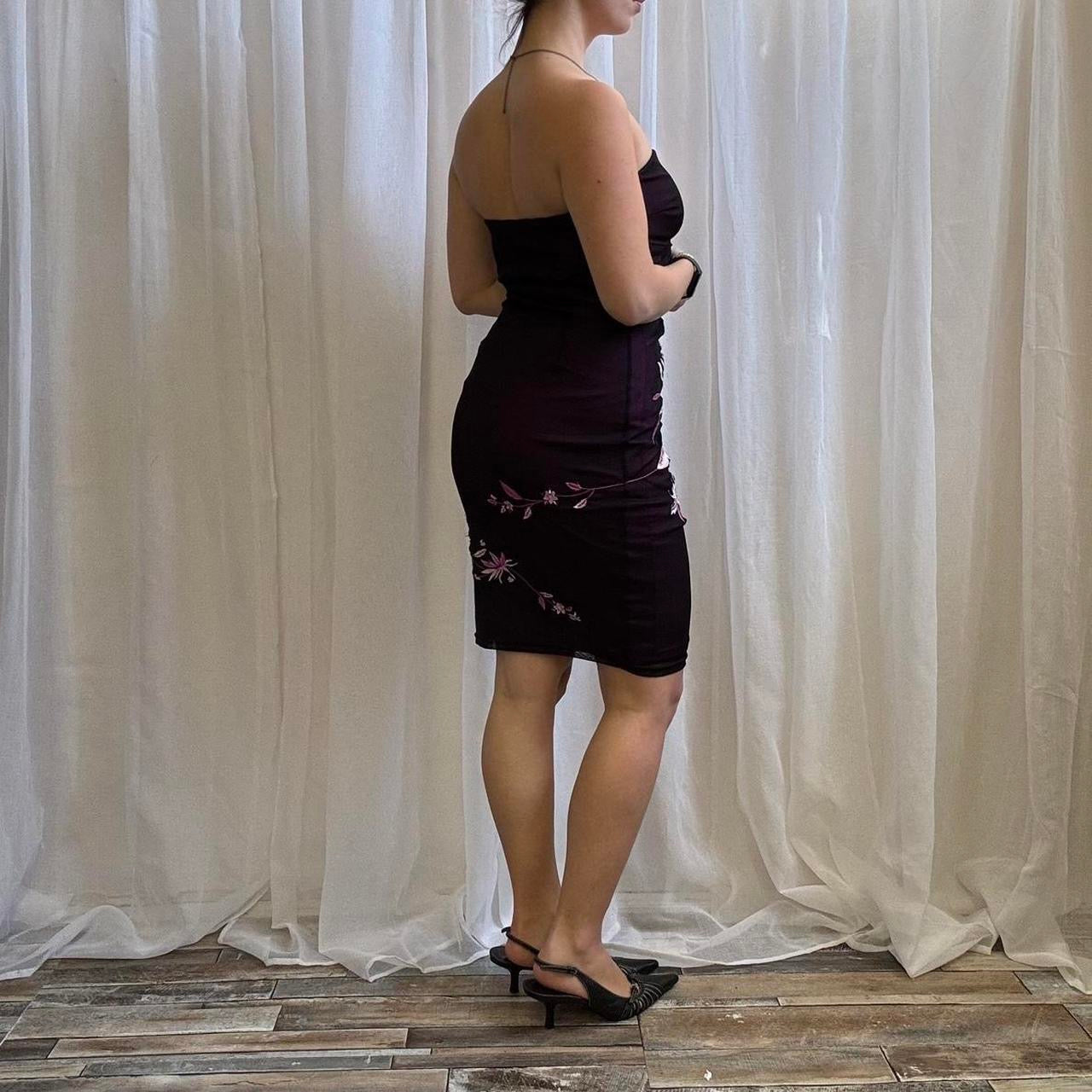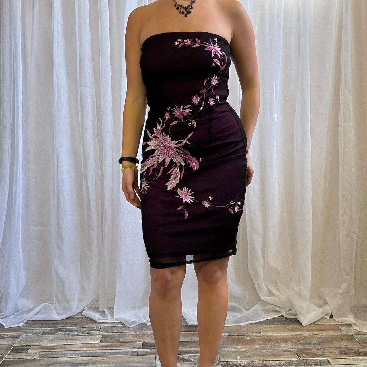 y2k Jane Norman strapless mini dress black pink floral mesh overlay