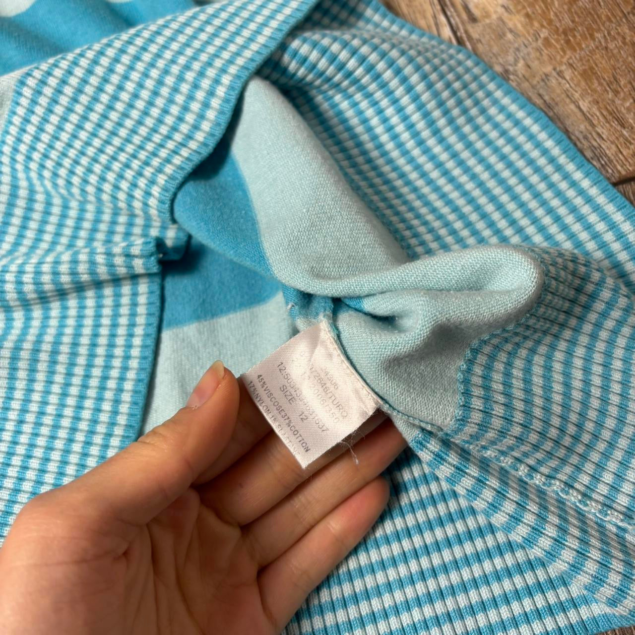 Y2K Jane Norman short sleeve longline jumper blue stripe v neck uk 12
