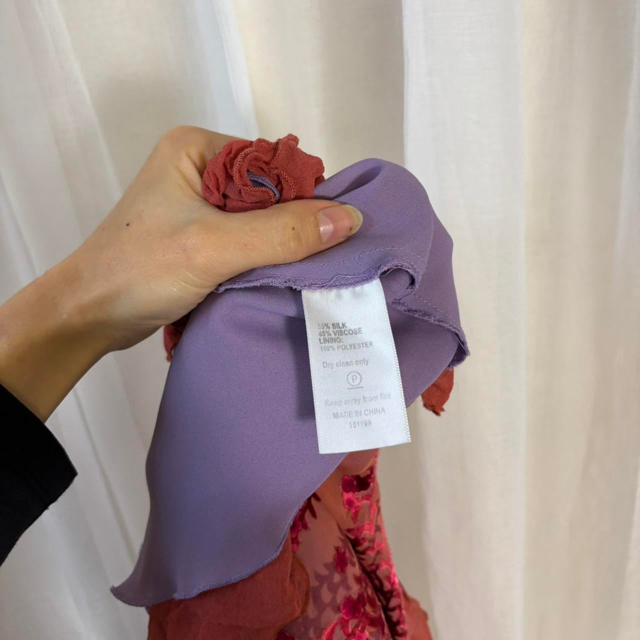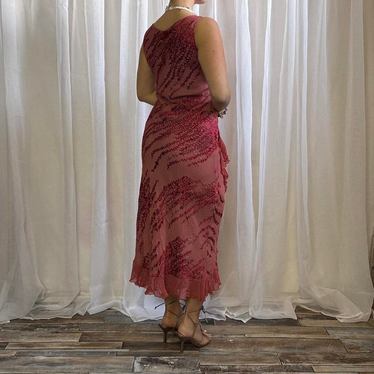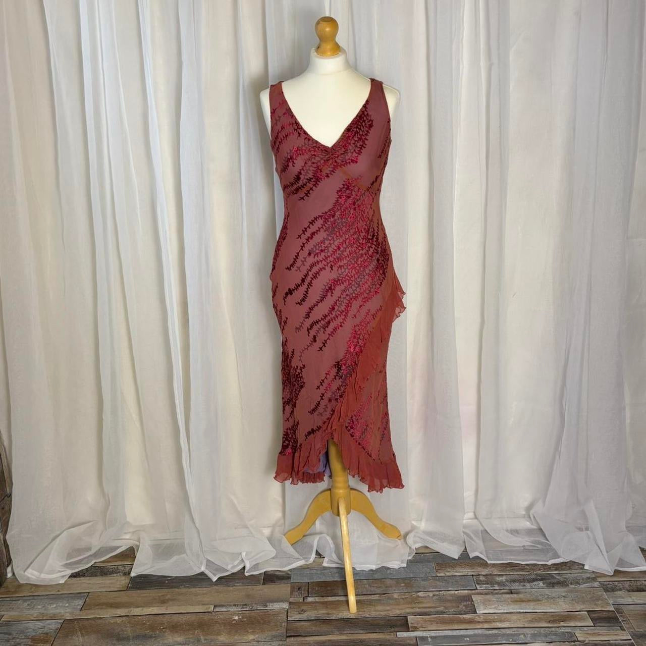 Y2K Monsoon midi dress silk blend floral pink red fishtail uk 10